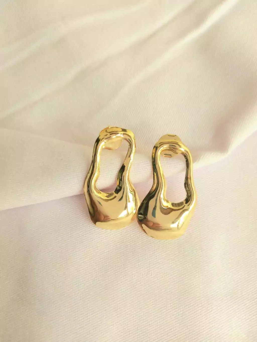 Brinco orgânico aberto meio Zelinda banhado a ouro 18k