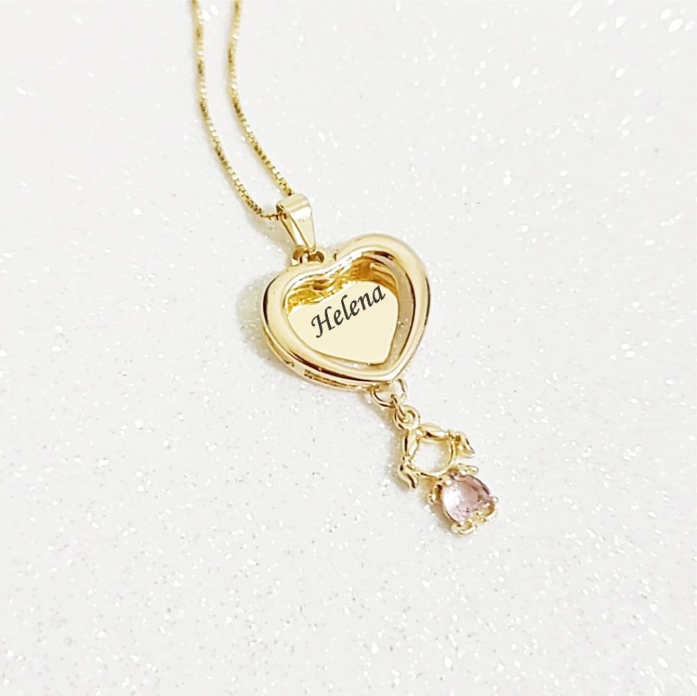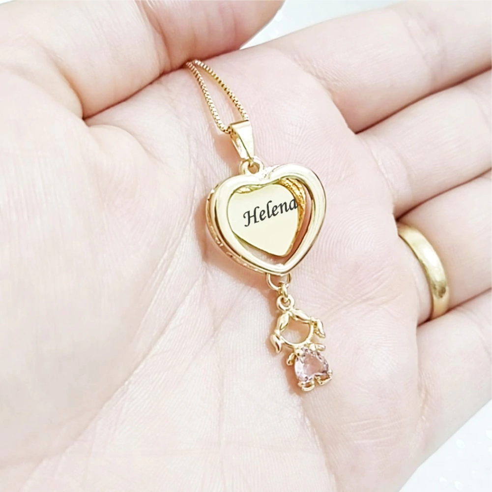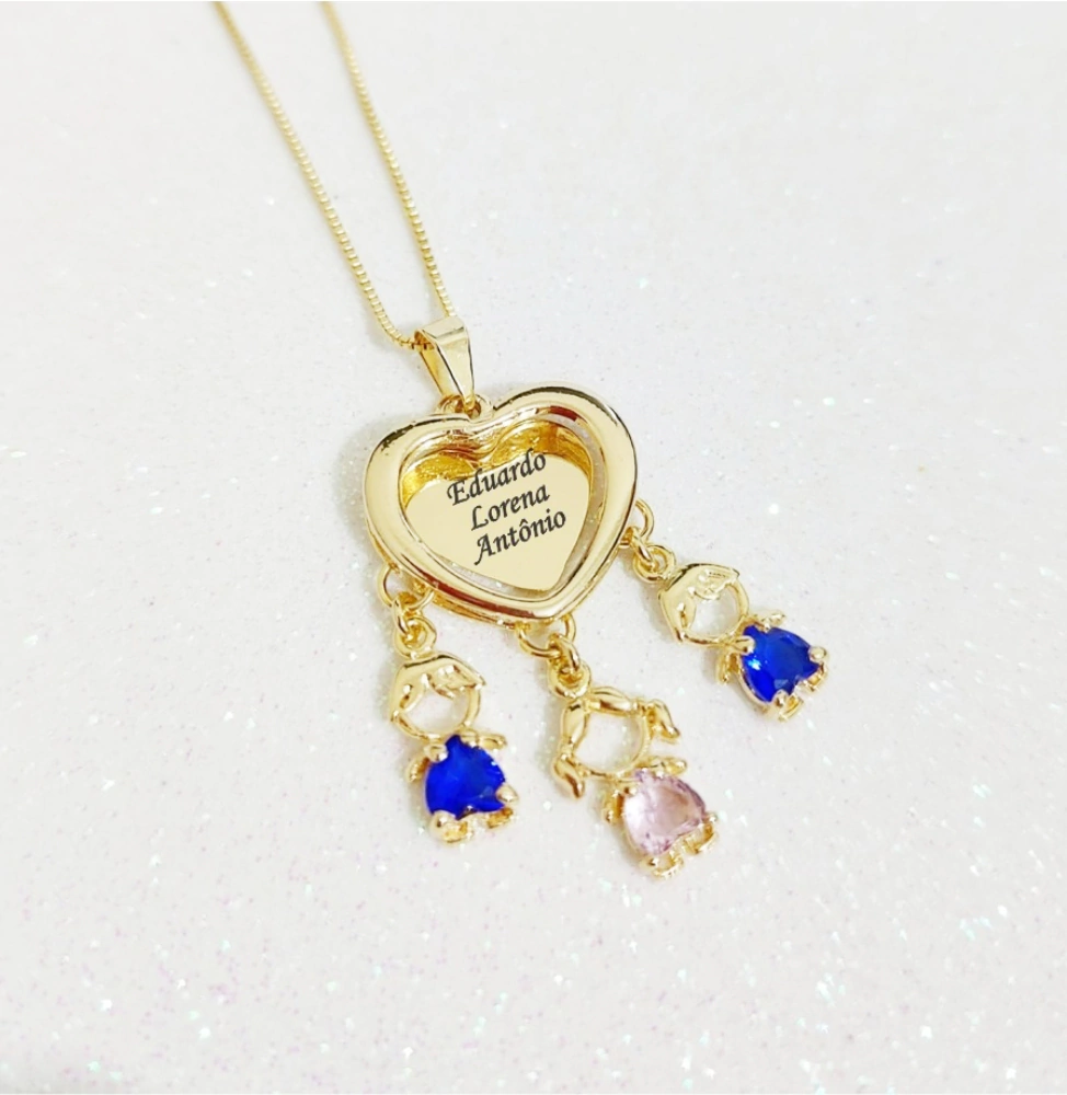 Colar coração com com nome com pingentes de até 3 filhos (as) personalizado banhado a ouro 18k. Prazo de entrega 40 dias úteis