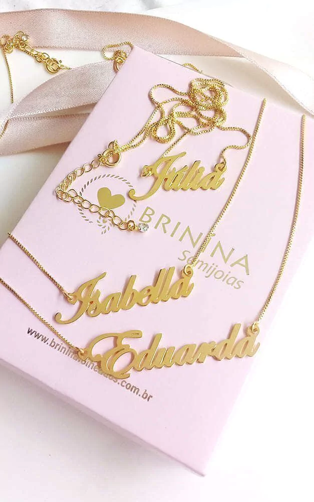 Colar com nome personalizado com 1 nome simples. Folheado a ouro 18k. Coloque no campo observação o nome que será feito.